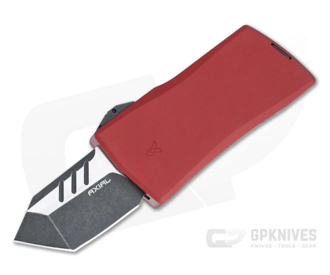 The California Legal Axial Dart is a compact double action out-the-front automatic perfect for everyday carry in more restrictive environments. A full size anodized aluminum handle houses a sub-2 inch blade that handles the majority of daily cutting tasks with ease while being legal in many areas. Utilize the deep carry clip for standard pocket carry or as a money clip for added discretion. This version has a two-tone Blackwash finished CPM-S35VN Tanto blade and red anodized handle.
