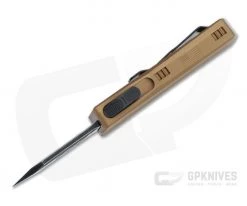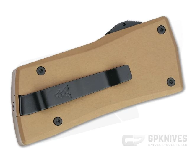 The California Legal Axial Dart is a compact double action out-the-front automatic perfect for everyday carry in more restrictive environments. A full size anodized aluminum handle houses a sub-2 inch blade that handles the majority of daily cutting tasks with ease while being legal in many areas. Utilize the deep carry clip for standard pocket carry or as a money clip for added discretion. This version has a two-tone Blackwash finished CPM-S35VN Tanto blade and tan anodized handle.