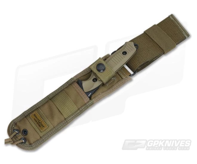 Sheath:Â Carries via a MOLLE compatible Coyote tan nylon belt sheath with drop loop.