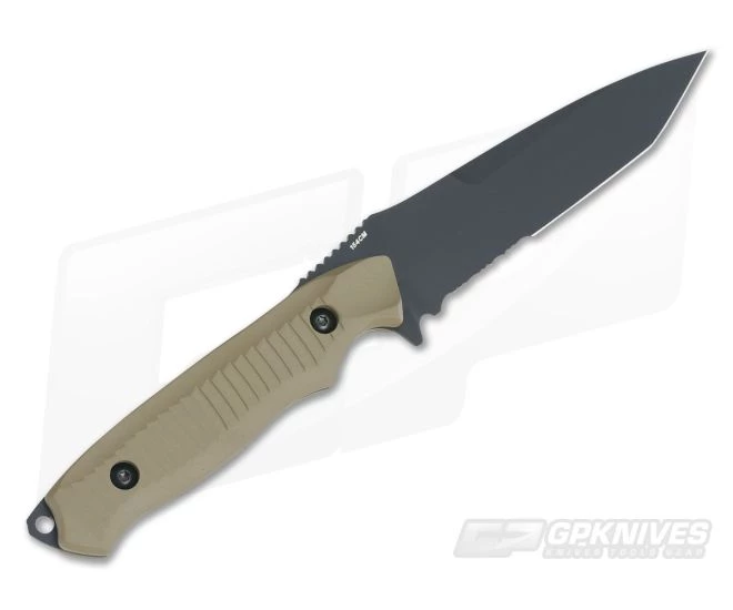 Blade:Â Made from well-balanced, American 154CM stainless steel, the Nimravus blade is executed in a mid-height saber grind with forward swedge for good slicing and piercing performance while retaining the durability required in a combat knife. This version comes with a Tanto point for added piercing power and a partially serrated edge that handles tough fibrous materials with ease while still providing plenty of clean cutting plain edge. Black, poly-ceramic Cerakote coating on the blade is durable, non-reflective and corrosion resistant for enhanced performance and discreet use.
