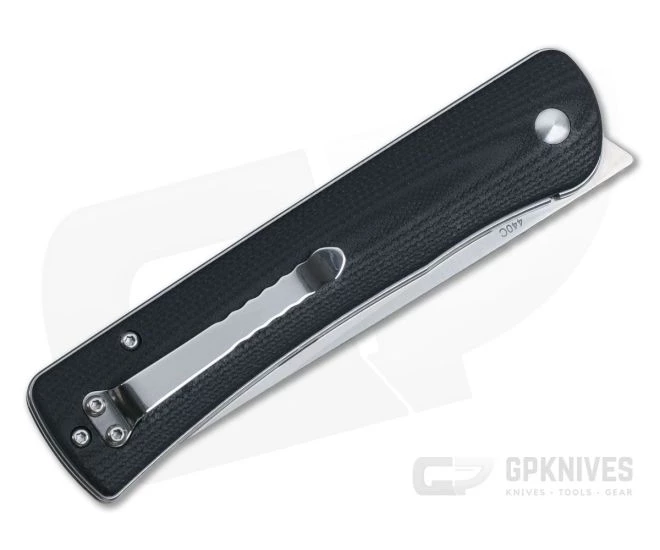 The Boker Plus Komusubi designed by Kansei Matsuno has a distinctly Japanese aesthetic that blends modern tactical and classic Tanto lines. The compact design offers smooth and reliable steel liner lock construction and bearing driven, front flipper deployment . This version has Black G10 handle scales and 440C stainless steel blade.