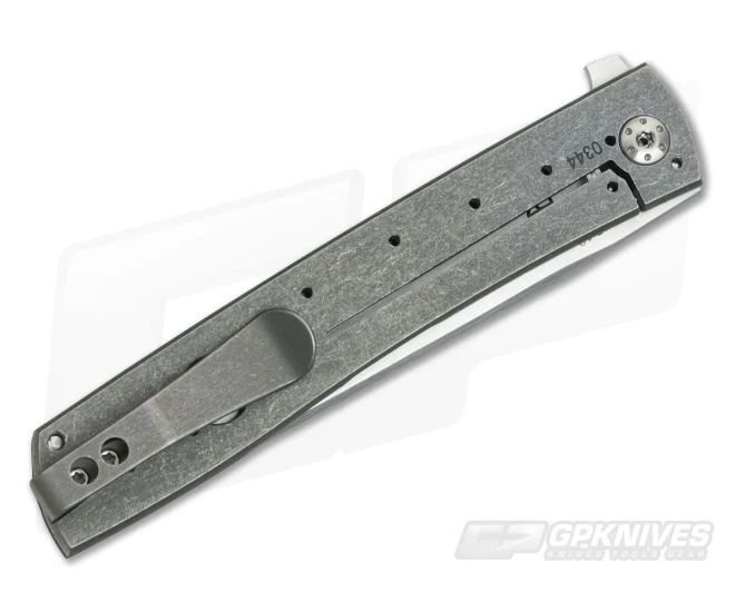 The Handle: The slim, contoured titanium frame has holes drilled on both sides that reduce weight, enhance traction and provide a visual appeal. While the frame features a flat surface, the edges have been chamfered and they are finished with a heavy stonewash helping to hide wear from daily carry. Carries via a low profile deep carry clip, tip-up right hand only.