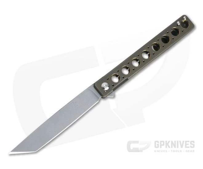 The Custom Brad Zinker Miscreant Slim Tanto 4.0 FLF is an elegant, slimline frame lock flipper with hand made, precision fit and finish and premium, high performance materials. This version of the Miscreant Slim Tanto 4.0 FLF comes with an acid stonewashed CPM-154 blade, hole milled, bronze anodized titanium handle construction and matching clip.
