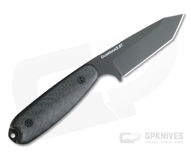 Brought about by popular demand, the Bradford Guardian 3.5 offers the same great performance of the Guardian 3 but with a larger handle for a more hand filling grip. Now available in a sabre ground Tanto profile for optimal piercing performance with a good balance of durability and cutting performance for utility and martial use. This version comes with a Black DLC coated, M390 Tanto blade and 3D Carbon Fiber handle scales.