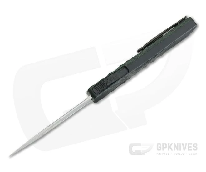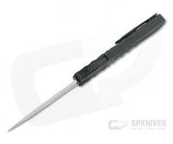 Blade:Â The sleek, hollow ground, Tanto blade provides powerful piercing and slicing performance with premium BG-42 stainless steel construction. A hand rubbed, horizontal satin finish is complemented by the compound grind for a stunning look that fits with the style of this high level custom piece. Deploying via a stepped carbon fiber slide, the double action is fast and smooth for lightening quick deployment and retraction.
