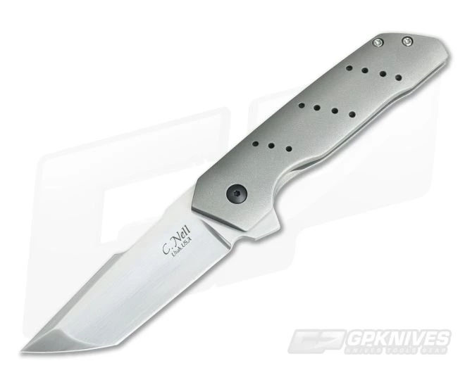 This custom knife includes a tip up carry pocket clip, C. Nell USA Dragoncut Design button pouch and signed/dated Specs card from the maker.