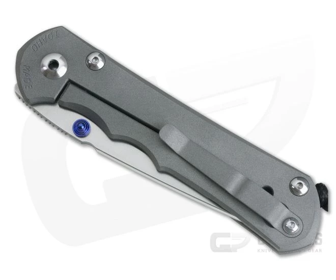Blade:Â The stonewashed CPM-S35VN Tanto blade is thicker for enhanced durability and introduces CRK’s Large Hollow Grind technology with dual titanium thumb lugs standard.The new grind is half way between a flat grind and their standard hollow grind gaining strength from the flat and proven sharpening longevity of the hollow. It also implements a strengthened pivot with a larger stop pin and over sized, twin phosphor bronze washers with larger grease pockets (less surface area friction). The washer diameter is wider than the blade ensuring zero side-to-side play.