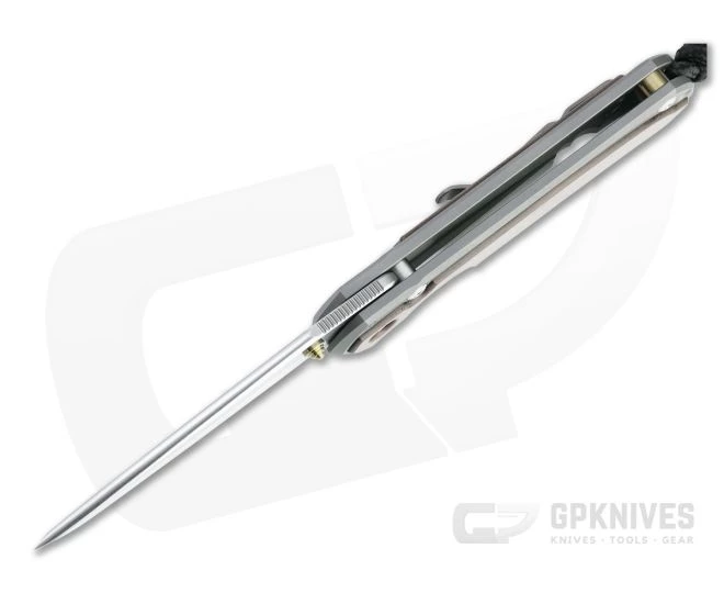 Handle: Upgraded with a stunning glass-bead blast finishing, the 6AL4V titanium handle slabs have a smooth, silky feel. The front ebony wood inlay is a large, single piece that lends elegance to the sleek design. A Reeve Integral Lock utilizes the titanium frame to deliver “bank vault” lockup, while the Ceramic Ball Interface increases lock reliability and life while delivering smooth operation. Includes a tube of fluorinated grease, microfiber cloth, leather slip sheath and information packet.