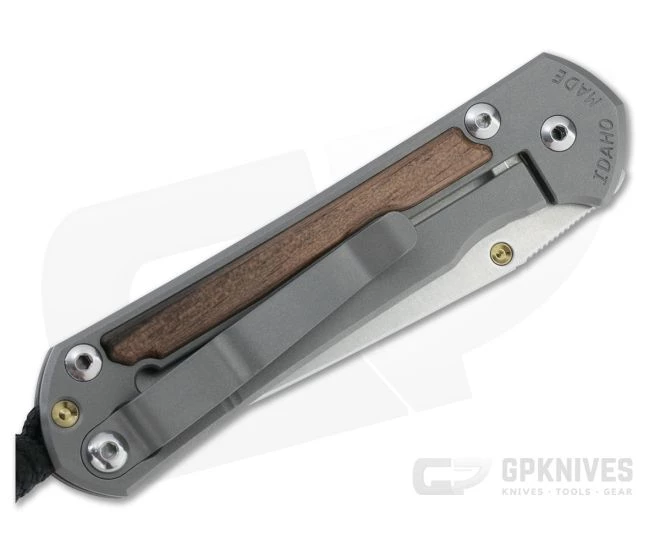 Handle: Upgraded with a stunning glass-bead blast finishing, the 6AL4V titanium handle slabs have a smooth, silky feel. The front ebony wood inlay is a large, single piece that lends elegance to the sleek design. A Reeve Integral Lock utilizes the titanium frame to deliver “bank vault” lockup, while the Ceramic Ball Interface increases lock reliability and life while delivering smooth operation. Includes a tube of fluorinated grease, microfiber cloth, leather slip sheath and information packet.