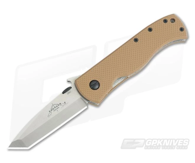 Part of the Emerson Prestige Line the Emerson CQC-7V delivers their iconic Tanto point folder in the popular double V-ground blade. This hard-use tactical folder is outfitted with “Afghan Tan” G10 handle scales for use in desert environments. As with most Emerson knives the Desert CQC-7V offers dual deployment via either the Wave feature or ambidextrous thumb disk. Razor sharp and proudly Made in the USA. Brand New, Direct from Emerson Knives.