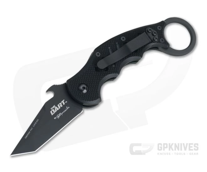 Designed by martial arts instructor and edged-weapons specialist Doug Marcaida, the Fox Knives Dart is smaller version of his popular folding Karambit design with a more utilitarian yet tactically functional Tanto profile blade. The compact liner lock folding design carries well in the pocket for everyday carry and use while the Emerson Wave feature delivers ultra-fast deployment on the draw. The 597 Dart comes with a black Idroglider coated N690Co Tanto blade and black G10 handles.
