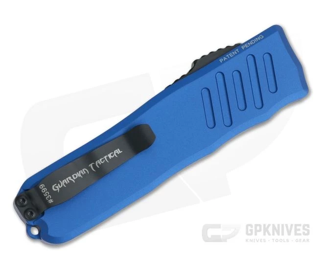 The Recon-035 is a modern and innovative, double action, out the front automatic that is perfect for everyday carry. With patented steel thumb slide base and floating blade construction the Recon-035 is smooth and reliable in its operation while having minimal play and a rock solid feel. This version comes with a partially serrated Tactical black coated, Tanto Elmax blade and Blue handle with all black hardware.