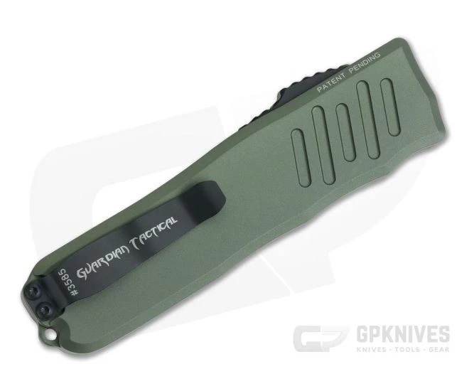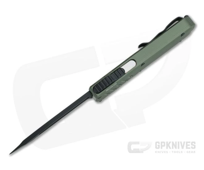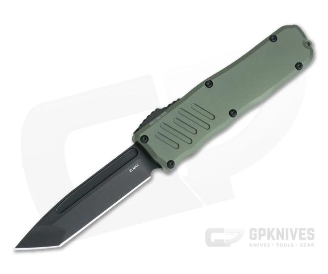 The Recon-035 is a modern and innovative, double action, out the front automatic that is perfect for everyday carry. With patented steel thumb slide base and floating blade construction the Recon-035 is smooth and reliable in its operation while having minimal play and a rock solid feel. This version comes with a Tactical black coated, Tanto Elmax blade and OD Green handle with all black hardware.