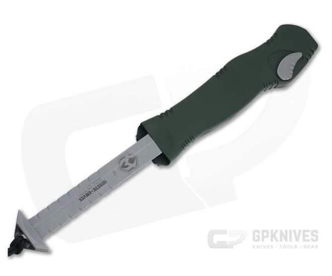 The Heretic Knives Hydra is a powerful, single action, out-the-front automatic built in an everyday carry size. Simple and robust, the Single Action Hydra is a thing of beauty and a reliable cutting tool that is a joy to use and operate. This version comes with a Battleworn S35VN Tanto blade and Solid Green handle.
