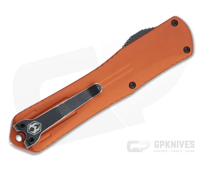 The Manticore-X is the largest double action, out-the-front, automatic and top tactical choice from the Manticore line from Heretic Knives. Fluted aircraft grade aluminum handles with traction scallops and contours offer a secure and comfortable grip with fast double-action operation. This version comes with a two-tone Battleworn Black Elmax Tanto blade and orange anodized handles.
