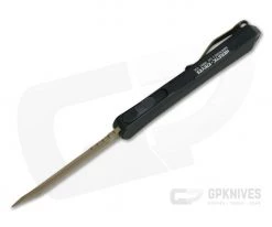 Blade:Â The long, saber ground, Tanto profile blade combines powerful cutting performance with an elegant slender look. High quality, American CPM-S35VN stainless steel blade was chosen for its balance of edge retention, corrosion resistance and edge toughness. The blade has a Battleworn Bronze finish, bronze anodized and tumbled, that offers a rugged and discreet look and hides wear from use. It deploys via a dual action automatic mechanism for fast, smooth operation. Simply press the thumb slide up to open and then back down to close.
