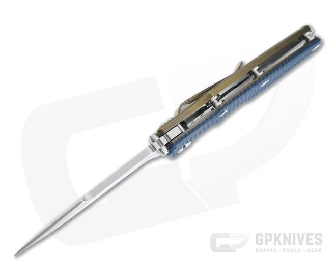 The Hinderer Knives Eklipse is a robust tactical everyday carry folder that offers an ergonomic, streamline handle design that is comfortable for extended use and carry. A +6 mm thick, solid titanium frame paired with the stainless steel lock face equipped titanium frame lock and Hinderer Lock Bar Stabilizer provide a tank like platform capable of handling intense use. The 3.5 Eklipse is comes standard with the innovative Tri-Way pivot system for user customizable operation. This version features a stonewashed 20CV Harpoon Spanto blade, blue/black layered G10 scale and stonewashed bronze frame.