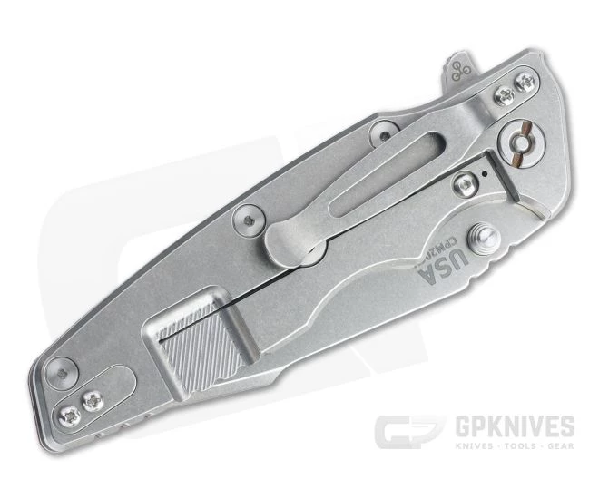 Blade:Â The stonewashed CPM-20CV Harpoon Spanto blade hides wear from use while having a visually appealing look. Equipped with a robust saber grind, the Spanto (spear/Tanto) profile is both suited for practical and tactical applications with a harpoon swedge for style and durability. Deployment is smooth and decisive thanks to a well dialed in detent and factory installed Tri-Way pivot bearings. Dual thumbs studs and an index flipper provide multiple deployment options.