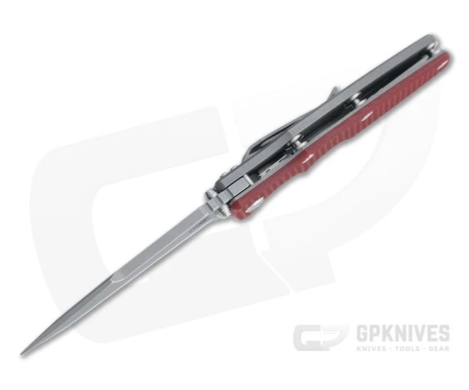 The Hinderer Knives Eklipse is a robust tactical everyday carry folder that offers an ergonomic, streamline handle design that is comfortable for extended use and carry. A +6 mm thick, solid titanium frame paired with the stainless steel lock face equipped titanium frame lock and Hinderer Lock Bar Stabilizer provide a tank like platform capable of handling intense use. The 3.5 Eklipse is comes standard with the innovative Tri-Way pivot system for user customizable operation. This version features a Working Finish 20CV Harpoon Spanto blade, red G10 scale and Working Finish frame.