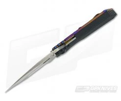 The Blade:Â The Tanto point CPM 20CV blade is two-tone finished with machine satin on the compound “Nightmare” grinds and an apocalyptic orange peel texture on the flats and spine. The false edge top and shallow hollow ground tip deliver unstoppable piercing capability. The hollow primary grind ends in a razor sharp edge for optimal slicing performance. The top of the spine is free of jimping for more comfort using a Filipino grip. The blade opens smooth on phosphor bronze washers via the oval blade hole. The iconic Strider choil is signed M. Strider.Â