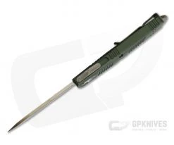 The Combat Troodon out the front automatic knife by Microtech is a substantial tool popular among military, law enforcement and first responders. Its size lends itself to many tougher situations while remaining slender enough to keep on your person daily. This version of the double action auto features a Bronzed Apocalyptic Tanto blade of CTS-204P, OD Green handle and matching bronzed hardware. Named after a bird-like dinosaur from the Campanian Age and ready to strike.