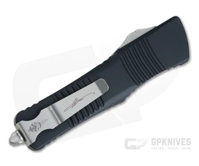 Handle:Â Robust, Black hard anodized, aircraft-grade alloy offers 5.25 inches of handle, excluding the breaker, substantial enough for even the largest or gloved hands. The standard aluminum top has been replaced by durable and ultralight Carbon Fiber that enhances both the ease of carry and visual appeal. The knife is comfortable in the hand, with contoured edges, while wide sections of jimping are perfectly placed for a secure grip. It is built with proprietary Microtech hardware, integrated glass breaker end and pocket clip with laser engraved logo, date of manufacture, and signature.
