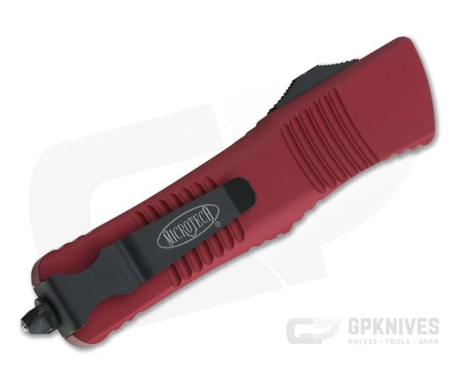 Handle:Red hard anodized, the 6061-T6 aluminum handle offers 5.25 inches of handle, excluding the breaker, substantial enough for even the largest or gloved hands. It has a smooth feel with machined grooves perfectly placed on both outer sides for traction. It is built with Microtech’s proprietary hardware, integrated glass breaker end and pocket clip. Each is individually numbered and dated on the front of the handle.