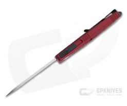 The Combat Troodon out the front automatic knife by Microtech is a substantial tool popular among military, law enforcement and first responders. Its size lends itself to many tougher situations while remaining slender enough to keep on your person daily. Named after a bird-like dinosaur from the Campanian Age and ready to strike. This version comes with a two-tone, black coated, CTS-204P Tanto blade and red anodized aluminum handle.
