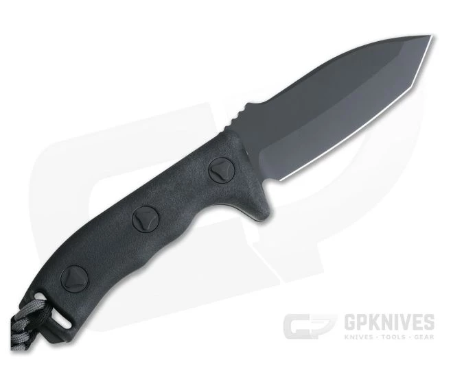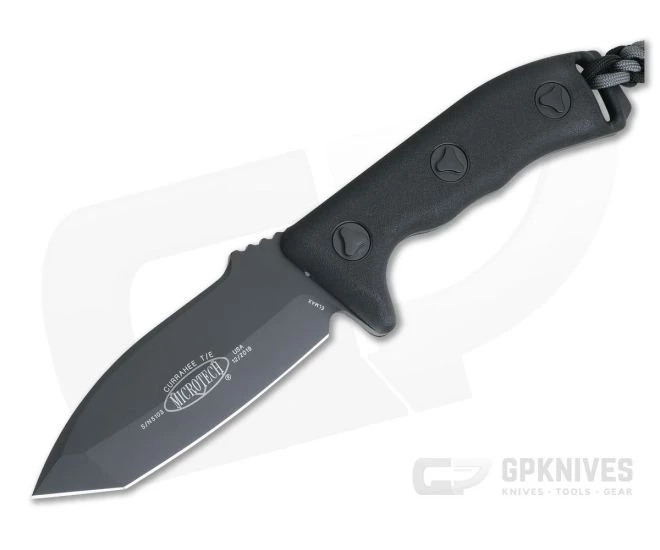 The Microtech Currahee Tanto, Cherokee for “stands alone”, extreme duty fixed knife has a Black coated plain edged tanto-style blade. This serious duty fixed blade is ripe for heavy work.