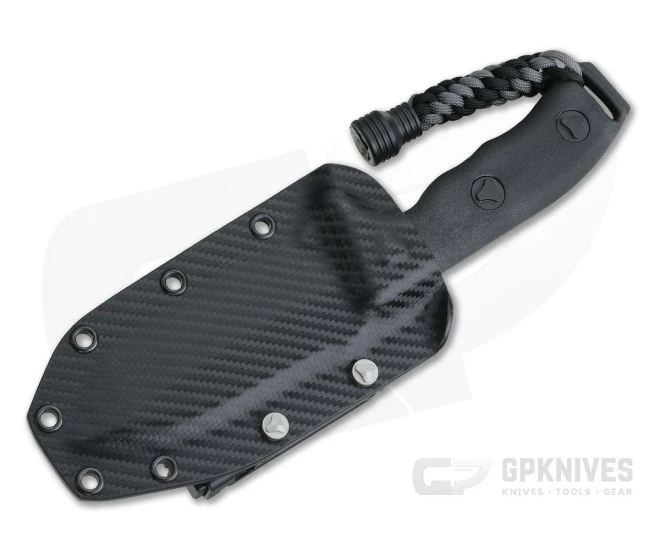 The Blade:Â The full tang of hard-working Bohler Elmax steel is black finished and features a razor-sharp Tanto piercing edge to tackle any job. It’s quite thick and graces a rising, textured thumb rest for control.Â