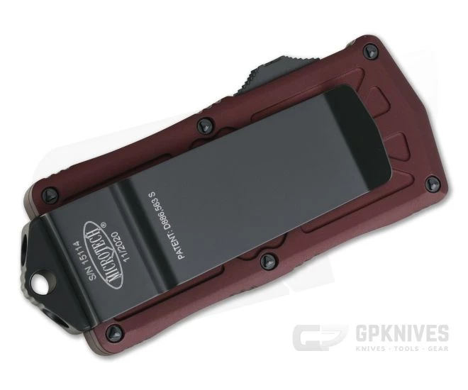 Handle: A Merlot hard anodized 6061-T6 aluminum handle has rounded edges with strategically placed milling creating a comfortable, secure grip and a smooth transition in and out of your pocket. An extra wide “money” pocket clip makes this a prime choice for gentleman’s carry. Construction is completed with Microtech’s proprietary black hardware, looped hole end knocker and clip with individual serial number/date of production.