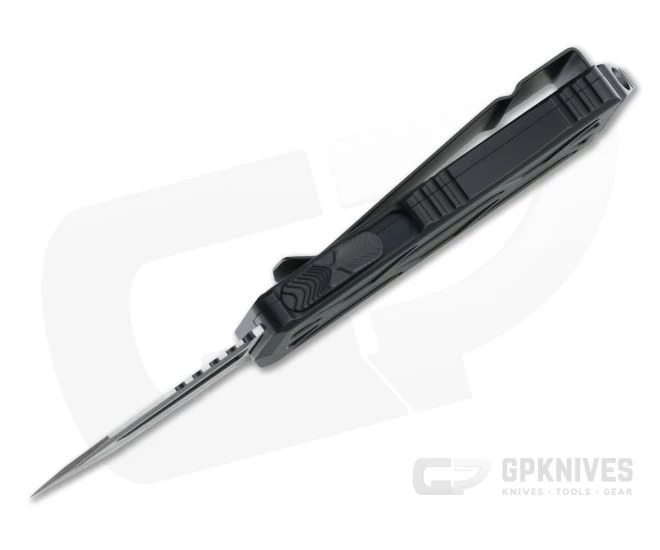 The California legal Exocet is a dual action mini out the front automatic knife from Microtech that’s one of the most friendly for everyday carry. The compact size is perfect for watch pocket or key ring carry and the oversize clip doubles as a money clip for in pocket carry. This Tactical version has a black handle, matching hardware and two-tone black Cerakote coated M390 Tanto blade.