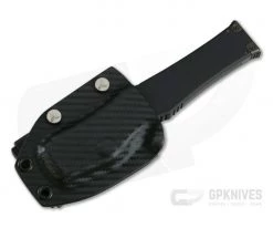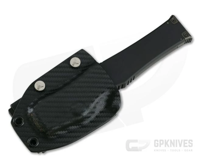 Carries via a black, carbon fiber textured Kydex sheath with DOTS Tek-Lok style locking belt clip.