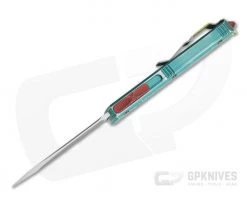 Handle:Â A smooth, distressed and green anodized 6061-T6 aluminum handle has contoured edges for a comfortable feel in-hand and smooth transition in and out of your pocket. Contoured aluminum is lightweight, durable and aesthetically pleasing. There are several areas of machine-grooved texturing around the outsides aiding in grip. The handle’s construction is completed with Microtech’s distressed red proprietary hardware, glass breaker end and Apocalyptic/yellow pocket clip with BH symbol/date of production.