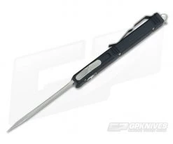 The Ultratech dual action out the front automatic knife from Microtech sets the standard for the category. With a sleek yet robust design, precision American made construction and premium materials the Ultratech is a perfect everyday carry companion. This version has a black contoured aluminum handle and a stonewashed, partially serrated edge Tanto CTS-204P blade.