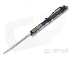 The Ultratech double action out-the-front automatic from Microtech sets the standard for the category. With a sleek durable design, precision American made construction and premium materials, the Ultratech is a perfect everyday carry companion. This Signature Series T/E version has a black contoured aluminum handle with “Death Card” graphic, bronzed Apocalyptic Tanto blade and matching hardware.