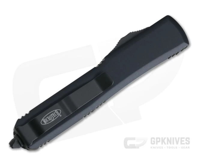 The Ultratech dual action out the front automatic knife from Microtech sets the standard for the category. Slim and lightweight enough for everyday carry but robust enough for hard tactical use, the Ultratech is a force to be reckoned with. This Tactical UMS (Uniformed Military Services) version has Black contoured handles with black hardware and an American, CTS-204P stainless steel Tanto blade featuring a black two-tone finish and partially serrated edge.