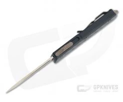 Handle: The smooth, black hard anodized 6061-T6 aluminum frame and carbon fiber top have rounded edges, creating a comfortable feel in-hand and smooth pocket transition. Smaller and thinner than other Microtech OTF autos, the UTX-70 has no jimping for a cleaner look perfect for gentleman’s carry. Apocalyptic bronze proprietary hardware, glass breaker end and pocket clip with individual serial number/date of production round out construction.
