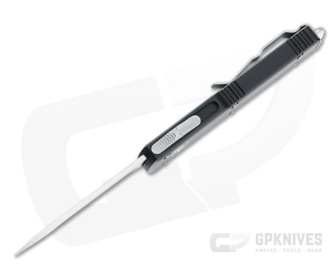 The UTX-70 (30% smaller than the standard Ultratech) is a dual action mini out the front automatic knife from Microtech that’s one of the most friendly for everyday carry. The bantam size is ideal for watch pocket, 5th pocket or jacket carry. This version has a two-tone stonewashed M390 Tanto blade and black anodized handle.