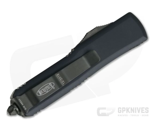 Handle:Â Smooth, Black anodized 6061-T6 aluminum has improved rounded edges creating not only a comfortable feel in-hand but a smooth transition in and out of your pocket. There are several areas of machine-grooved texturing around the outsides aiding in grip. This lighter more ergonomic grip is easy on the hands and eyes. The handle’s construction is completed with Microtech’s proprietary black DLC tactical hardware, glass breaker end and pocket clip with individual serial number/date of production all in a matching black DLC finish.