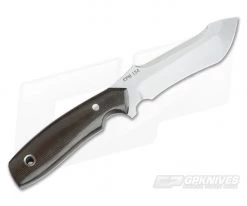 Blade: The CPM-154 blade is a compound ground, harpoon tip, recurve Tanto that offers versatility in its function. The tip is full thickness with a saber grind for optimal durability in piercing tasks while delivers fine control via the forward edge for detail work. The hollow ground recurve edge behind the Tanto point will slice well and pulls material into the cutting edge for more efficiency in use. A false edge on the spine reduces weight enhancing balance in the hand.