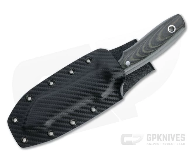 Carries via a carbon fiber pattern Kydex sheath with integral belt loop.