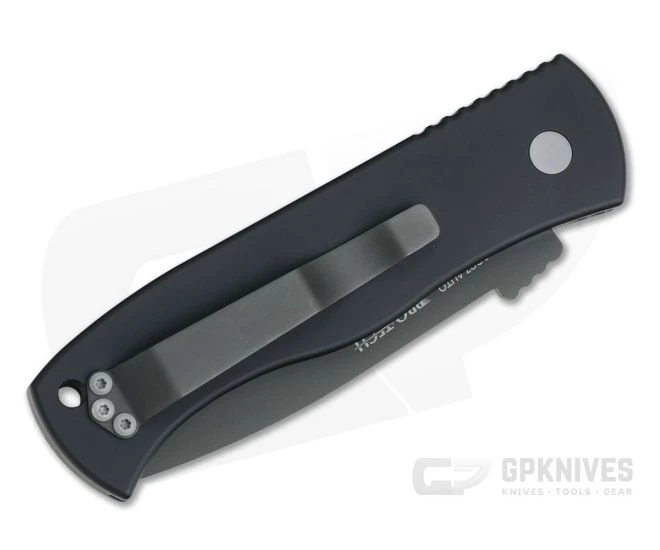 Handle:Â Smooth yet rugged black/brown Camo G10 forms the front scale. Super tough, Class III, military grade, black hard anodized aluminum on the back is milled with an integral partial back spacer to complete the handle. Protech added notching on the spine to extend the thumb ramp off the blade for more controlled cutting. Construction is rounded out with a lanyard hole and bead-blasted hardware.