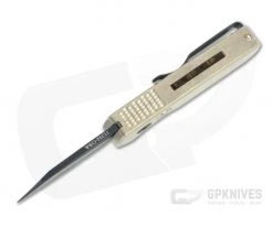 The Protech Knives Runt 5 is the newest evolution of the California legal Runt series of automatic knives from Protech. A stout, high performance Gentleman’s auto, the Runt carries well and performs like a razor while still being robust enough to handle a variety of cutting tasks. Built with modern American materials, high-tech manufacturing, advanced coil spring mechanism, and premium production quality, Protech delivers again with the Runt 5. This production prototype has a Mike Irie hand hollow grind, black DLC coated, CPM-20CV reverse Tanto blade, matching black hardware, stonewashed aluminum bronze handle and satin finished, Mother-of-Pearl inlaid button. Direct from Blade Show 2021.
