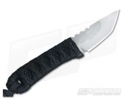 Randy Doucette Custom Back Up Neck Knife with Japanese Cord Wrap over Black Ray Skin and 1095 Tool Steel Tanto Blade with Clay Hamon. A classic design executed with Randy Doucette’s high level fit and finish and attention to detail. Brand new direct from maker.