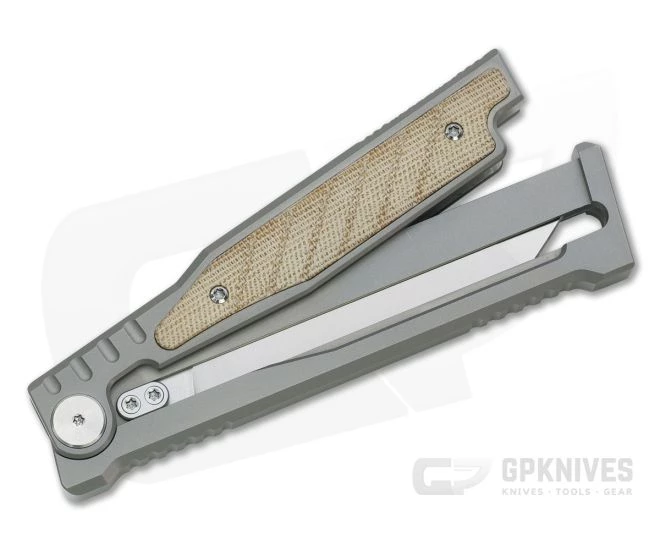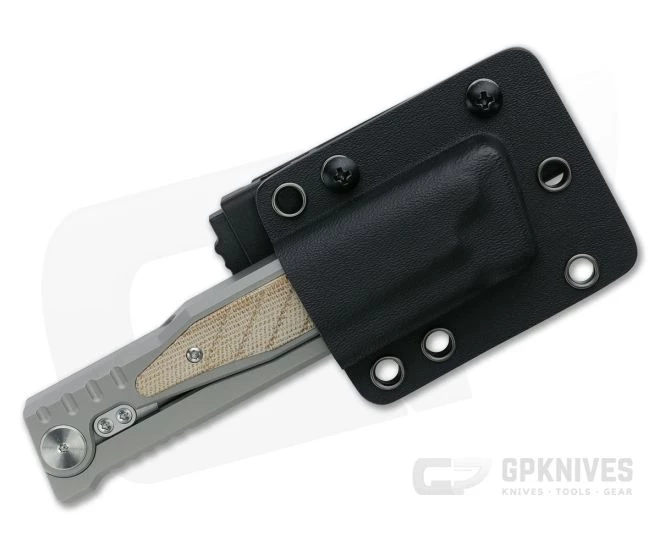 Handle: With integral billet titanium construction on both yoke and frame and a large titanium pivot/stop pin the handle delivers exceptional strength. The simple design is easy to clean and maintain. While the knife is non-locking, the blade holds secure in position while gripping the handle. Strategic jimping and milled canvas Micarta inlays ensure positive retention during use.