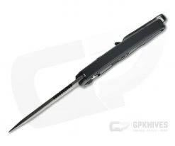 Blade:Â Three inches of razor sharp, hollow ground, AUS-8 stainless steel is finished with a non-reflective Black TiNi coating for discreet use. The Tanto point blade is flat ground at the tip for a powerful piercing point that retains good durability. The rest of the blade is equipped with a high hollow grind for powerful slicing and solid durability with the partially serrated section make short work of tough, fibrous materials. Spine jimping pairs with the ergonomic handle design to insure control and a secure grip during heavy use. Powered by a coil spring mechanism the blade deploys with lightening speed automatically at a touch of the button.