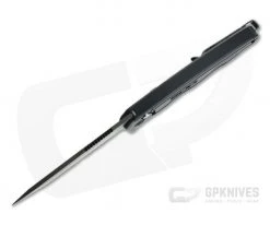 Blade:Â Durable, corrosion resistant Japanese AUS-8 stainless steel is finished with a non-reflective Black TiNi coating for discreet use. A Tanton point and high hollow grind offer powerful piercing and slicing performance while retaining good toughness at the tip and spine. The partially serrated section makes quick work of tough, fibrous materials while aggressive jimping insures a safe and secure grip during heavy use. Powered by a coil spring mechanism the blade deploys with lightening speed automatically at a touch of the button.