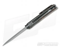 The Blade:Â The utilitarian drop point blade is made from stainless CPM-154 for excellent performance in corrosion resistance and wear resistance while still being easy to sharpen. The blade sports a subdued two-tone finish with blasted, matte grey grinds and bright satin flats. The blade rides on a bronze washers for a fluid feel and deploys via dual titanium thumb studs. The spine features a matching blasted finish and has a velvety feel. A shallow hollow grind delivers excellent slicing performance while the subtle Tanto-esque blade enhances piercing performance and fine cutting.