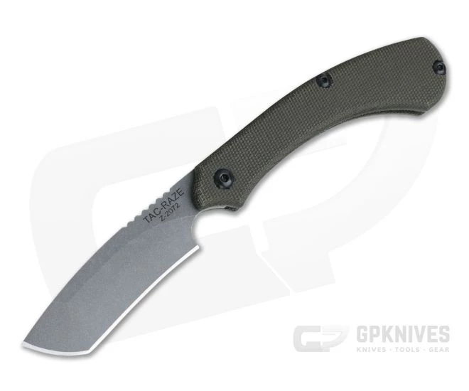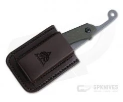 The TOPS Tac-Raze is a modern interpretation of a classic razor design. TOPS owner Leo Espinoza carefully designed this knife, making it more akin to a practical EDC folder than your grandpa’s old straight razor while keeping its roots intact. Right off the bat users will notice there is no lock, as the knife is a friction folder design which can be held into place by placing your hand over the extended blade tang. The Tac-Raze 04 has a handsome and rugged Green Canvas Micarta handle, high quality leather sheath for carry and Black River Wash finished, 1095 Carbon Steel, Recurved Tanto blade.
